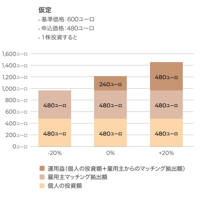 Keringマッチング拠出で、2株を上限に投資額と同額が寄与されます。